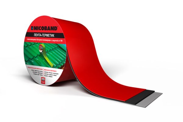 Nicoband – герметизирующая лента, состоящая из битумного слоя толщиной 1,5 мм, покрытая цветной армированной алюминиевой пленкой. Пленка придает ленте прочность и способность жестко скреплять герметизирующие элементы. Нижняя часть ленты покрыта защитной пленкой. Nicoband применяется при монтаже и ремонте мансардных окон, шиферного покрытия, фальцевых кровель, канализационных и водопроводных труб. Ленту Nicoband используют для герметизации швов и стыков бетона, кирпича, дерева, металла; устройства примыканий в кровлях; герметизации пароизоляции, вентиляционных и водосточных систем.